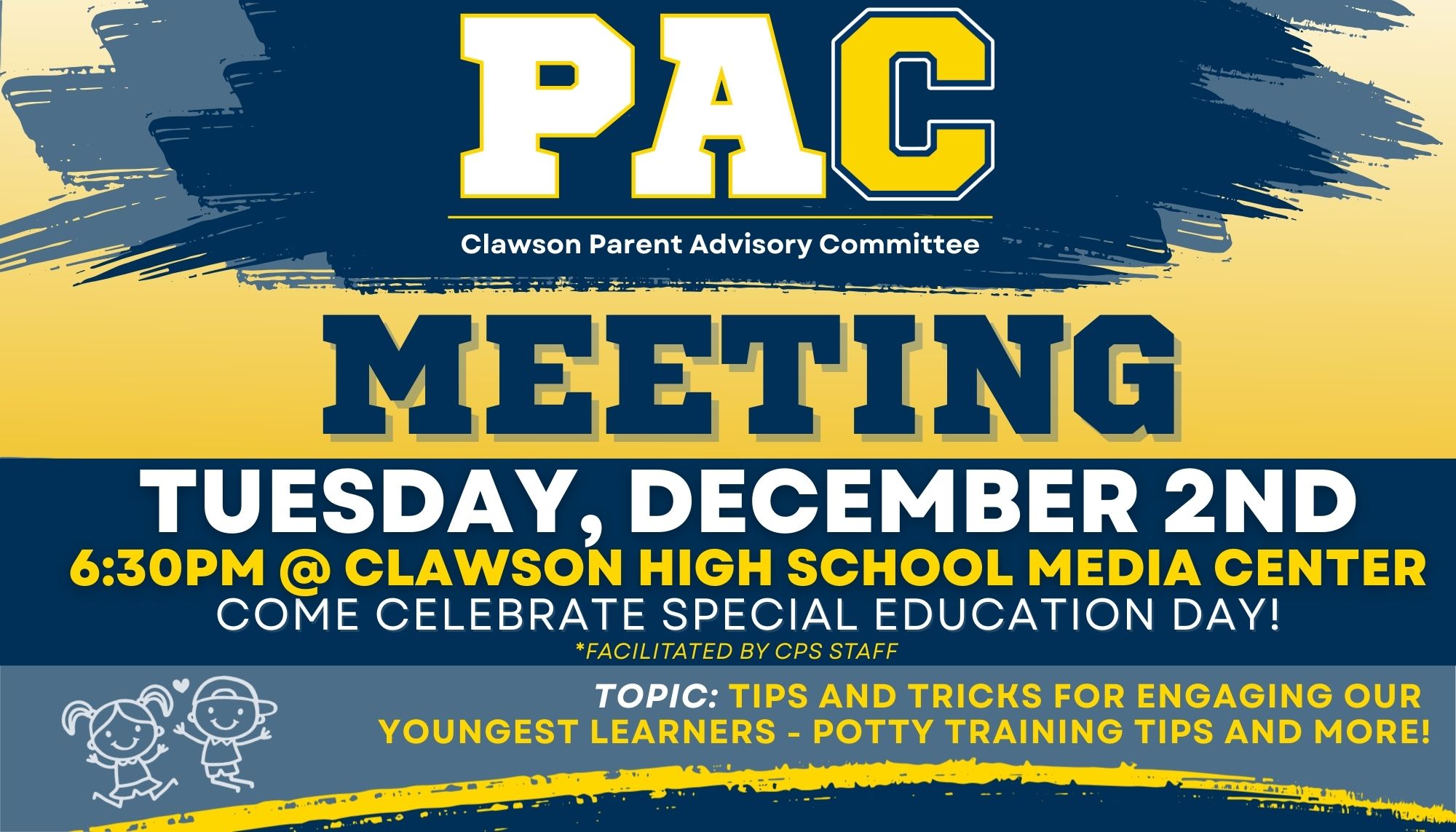 π£ Clawson families β join us for our first PAC Meeting of the year on Tuesday, December 2nd at 6:30 PM in the CHS Media Center!